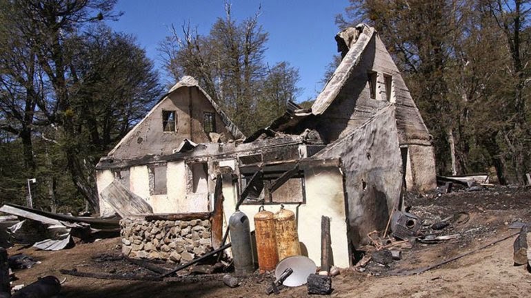 | Así quedó el refugio Neumeyer en Bariloche, luego del incendio provocado por 5 hombres encapuchados en octubre de 2014. |